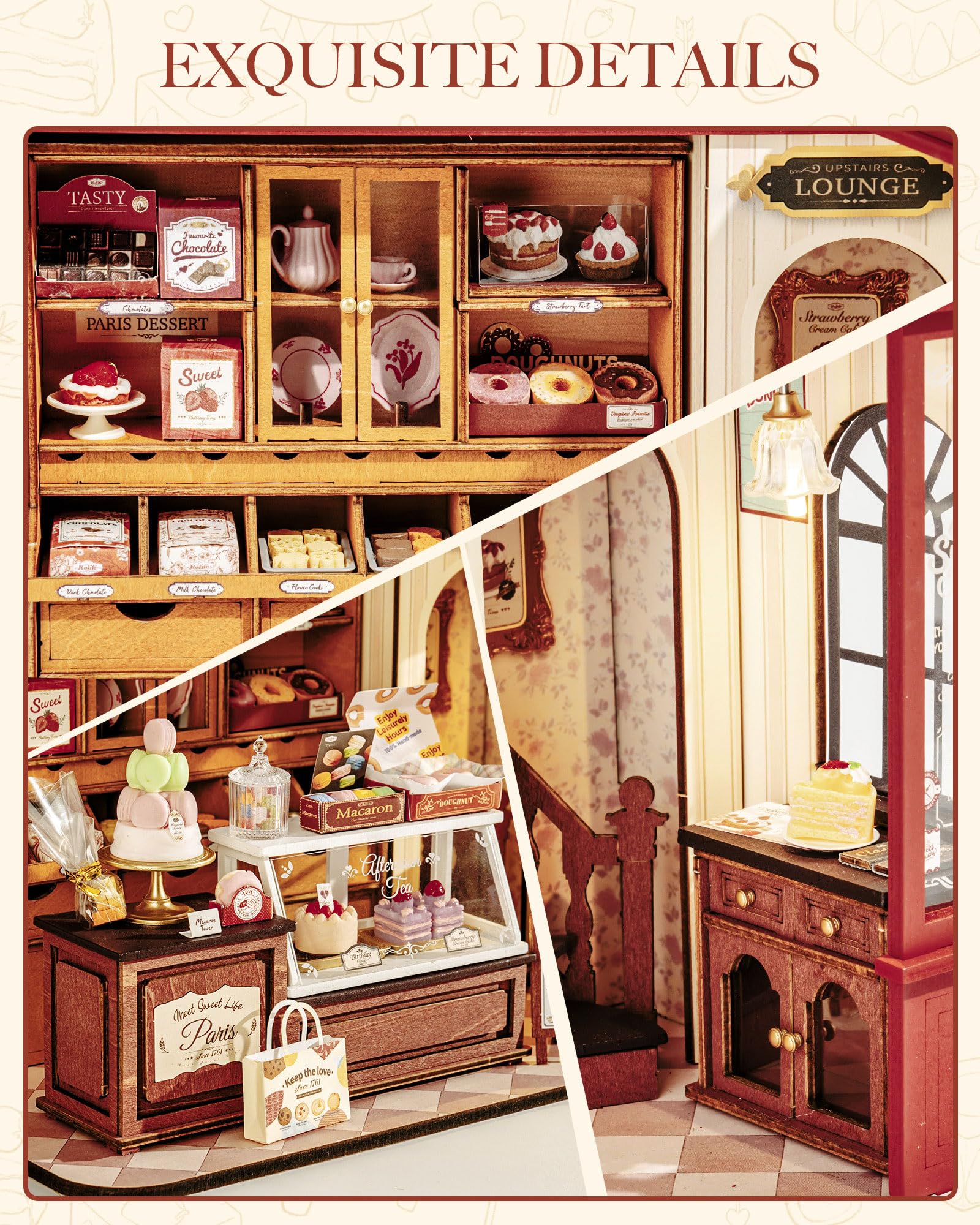 Rolife DIY Dollhouse Miniature House Kit 1:18 Vintage French Dessert Shop, Wooden Diorama Model Kit Mini House to Build with LED, Arts and Crafts for Adults Home Decor Creative Gift for Boys Girls